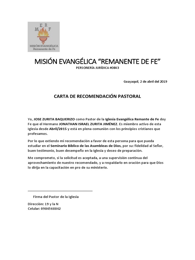 Carta De Recomendacion Pastoral Como Se Hace Y Modelos