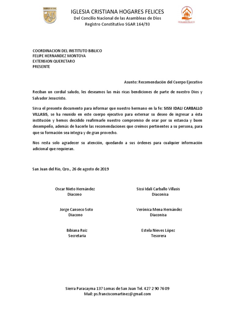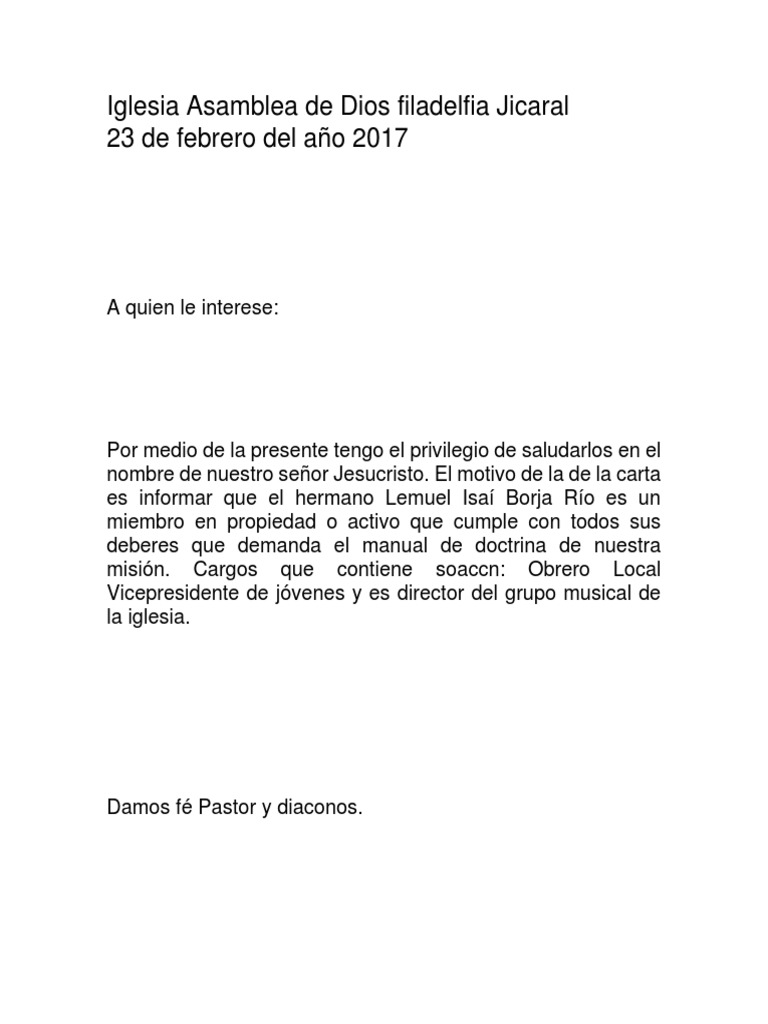 Carta de recomendacion de las asambleas de dios. De las Asambleas de Dios. FACULTAD DE TEOLGA DE LAS ASAMBLEAS DE DIOS DE AMRICA LATINA PROGRAMA DE MAESTRA EN TEOLOGA PRCTICA EDUCACIN TEOLOGA SUPERIOR Y DIVINIDADES Transforme su vida y ministerio. Resea de la misionera Ana Sanders del inicio de las asambleas de Dios en la Ciudad de Mxico mil novecientos veintiuno veinte aos han pasado desde aquel da que yo con el corazn palpitante temerosa sola y en un pas extrao de lenguaje desconocido para m baj del tren en la capital de Mxico por primera vez llegada de los Estados Unidos Dios me concedi conocer a los.